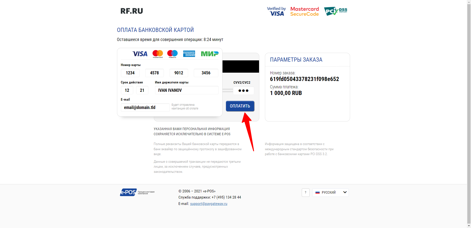 - Проверьте корректность введенных данных и нажмите кнопку Оплатить.